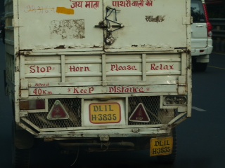 W Delhi pod nos wjechał nam taki napis. Odmienny od innych…może ma i rację.