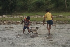 Zatrzymaliśmy się po drodze na obiad u gospodarzy poletka ryżowego. Ryż był, ale po rybkę wysłano szybko dzieci.